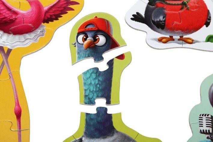 Puzzlika, nová značka puzzlů s moderním kreativním designem, přináší pro malé děti aktivní učení formou zábavné hry. Obrázkové puzzle Ptáci 5 v 1 obsahuje 25 velkých pevných puzzlů, ze kterých poskládáte 5 samostatných obrázků. Na každém obrázku je vždy vyobrazen roztomilý pták. Jednotlivé obrázky mají 4 až 7 dílků. Puzzle je skvělá hra pro malé děti, která u nich rozvíjí logické myšlení, představivost, kreativitu, jemnou motoriku a různé poznávací znalosti. Puzzle jsou vyrobeny z velice pevného vícevrstvého kartonu s lesklým povrchem. Karton byl vyroben z kvalitního, ekologicky pěstovaného dřeva. Puzzle je možné otřít vlhkým hadříkem. Nevhodné pro děti do 2 let. Vyrobeno v Evropě.