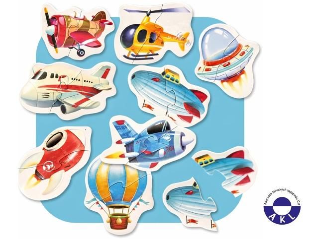 Puzzlika, nová značka puzzlů s moderním kreativním designem, přináší pro malé děti aktivní učení formou zábavné hry. Puzzle Letecká doprava obsahuje 16 velkých pevných puzzlů, ze kterých poskládáte 8 samostatných obrázků jednotlivých létajících dopravních prostředků. Naučné puzzle je skvělá hra pro malé děti, která u nich rozvíjí logické myšlení, představivost, kreativitu, jemnou motoriku a různé poznávací znalosti. Puzzle jsou vyrobeny z velice pevného vícevrstvého kartonu s lesklým povrchem. Karton byl vyroben z kvalitního, ekologicky pěstovaného dřeva. Puzzle je možné otřít vlhkým hadříkem. Nevhodné pro děti do 2 let. Vyrobeno v Evropě.