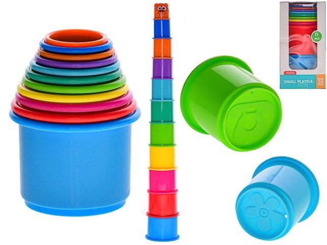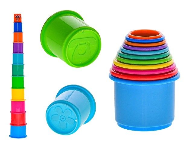 Sada barevných kalíšků , které si děti mohou skládat na sebe jako pyramidu. Kalíšky trénují koordninaci pohybů a rozvíjí logickou úvahu. Vhodné pro děti od 12 měsíců.