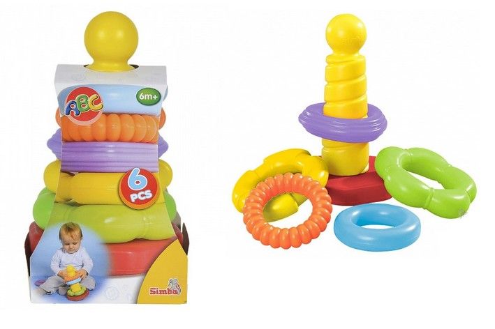 Oblíbená hra navlékání kroužků, kde je podporována dětská motorika a také rozpoznávání barev.