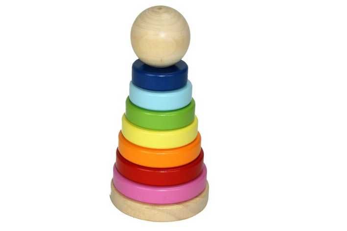 Pyramida kroužky dřevěná 2-Play 8x17cm