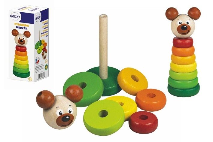 Pyramida medvěd dřevo 8ks 17cm v krabici 7x17,5x7cm 12m+