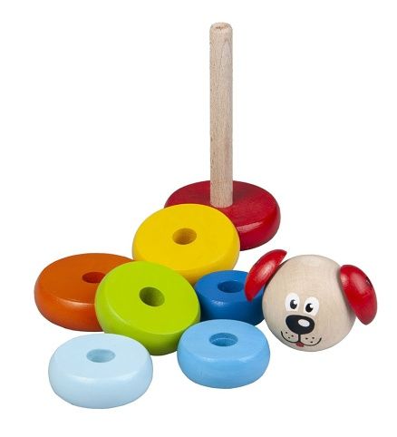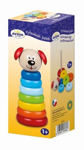 Skládací pyramida pomáhá rozvíjet motoriku rukou a představivost dítěte. Výrobek splňuje požadavky EU na bezpečnost hraček
