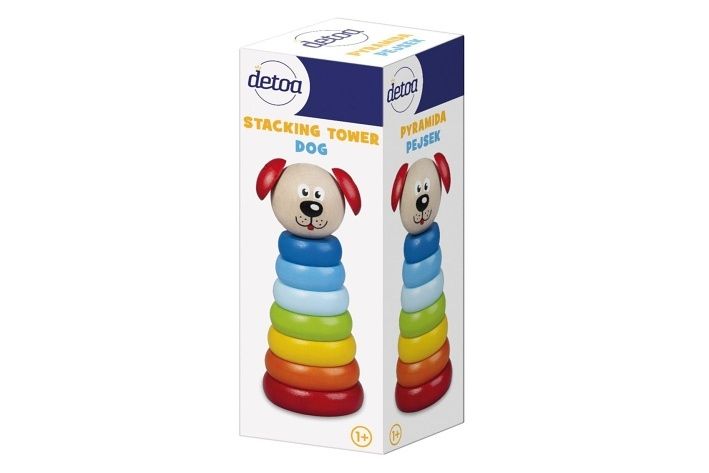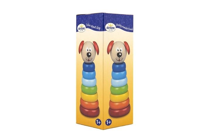 Pyramida pejsek se skládá ze 7 navlékacích dílů a jednoho základního dílu s tyčkou. Skládací pyramida pomáhá rozvíjet motoriku rukou a představivost dítěte.