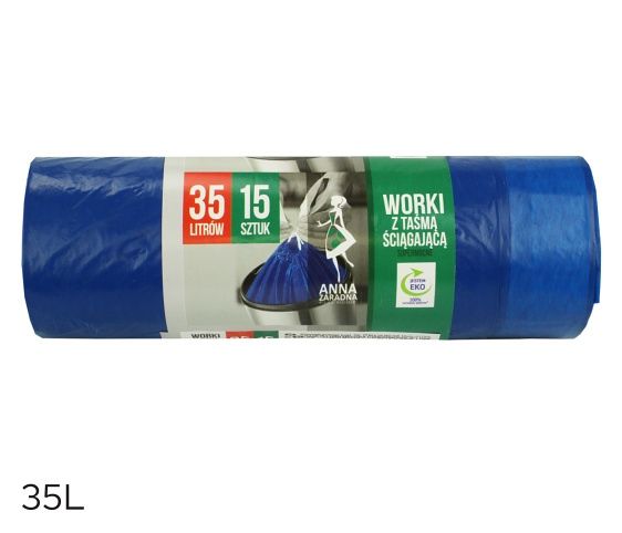 Supersilné pytle do koše - se zavazováním- barva: modrá- objem: 35 l- rozměr: 50x60 cm- tloušťka: 22,5 mic- počet: 15 ks- materiál: LDPE