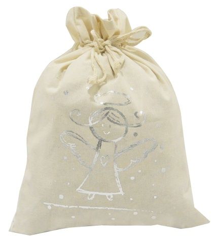 Pytlík látkový se stříbrným andělem 27 x 36 cm