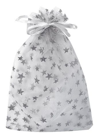 Pytlík organzový bílý s hvězdami s glitrem 15 x 22 cm