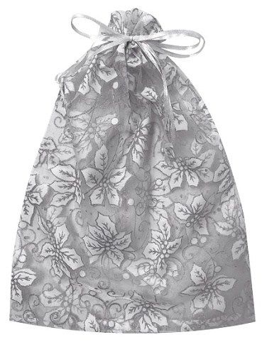 Pytlík organzový bílý s květy s glitrem 15 x 22 cm