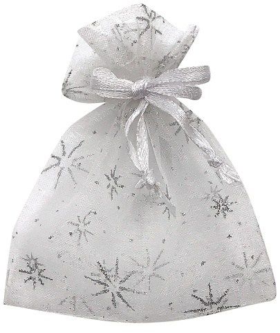 Pytlík organzový bílý s stříbrnými hvězdami 9x12 cm