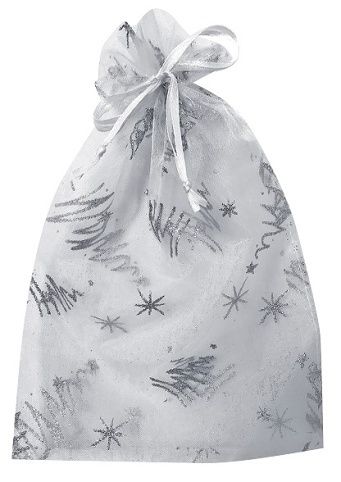 Pytlík organzový bílý se stromky a s glitry 26 x 35 cm