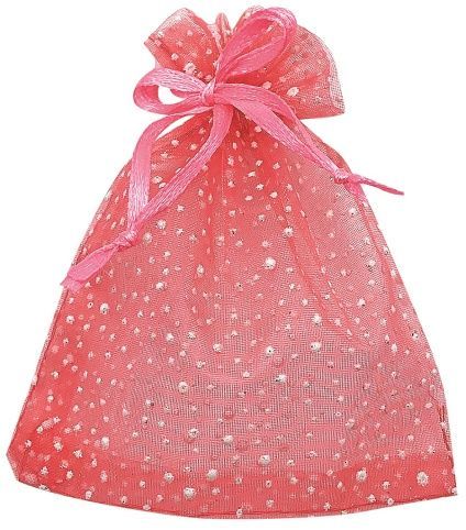 Pytlík organzový červený se třpytkami 26x35 cm