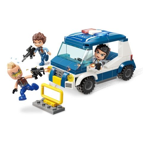 Odvážná posádka policejního auta je připravena bezodkladně zatknout uprchlého a po zuby ozbrojeného banditu. Vysoce variabilní stavebnice Qman z pestrobarevných plastových kostiček lze kombinovat s podobnými stavebnicemi mnoha dalších významných výrobců. Vyrobeno z kvalitního, nezávadného a odolného, ABS plastu. Baleno v pestře potištěné papírové krabičce. Hlavní vlastnosti: 121 dílků a 3 figurky kompatibilní se stavebnicemi dalších výrobců.