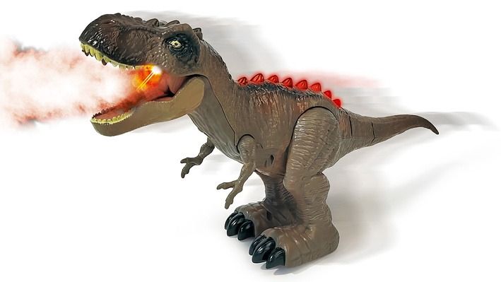 Obsah balení: Tyrannosaurus Rex 34 cm Dálkové ovládání 2,4G Nádobka na plnění vodou Baterie nejsou součástí balení Potřebné baterie: Dinosaurus: 3x AAA 1,5V Dálkové ovládání: 2x AAA 1,5V Hlavní funkce: Dálkové ovládání 2,4G Světelné efekty Zvukové efekty Vypouštění "dýmu" z tlamy Tlačítko ON/OFF pod ocasem Ovládání pomocí dálkového ovladače: FORWARD - chůze vpřed RETREAT - chůze vzad ATOMIZING - vypouštění dýmu ONE CLICK DEMONSTRATION - ukázka funkcí SWITCH - zapnout/vypnout