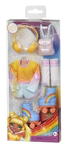 Svým oblíbeným Rainbow High panenkám nyní můžeš pořídit nový outfit. Ve Fashion setu najdeš oblečení, boty a doplňky. Zkrátka vše, co tvoje panenka pro nový look potřebuje. Můžeš vybrat jeden ze šesti populárních looků. Bude tvoje panenka dnes za baletku, stráví den u bazénu, půjde na party nebo přespí u kamarádky? Nebo si půjde zabruslit či podpořit svůj oblíbený sportovní tým? Obsah balení: • 1 outfit • 1 pár bot • doplňky