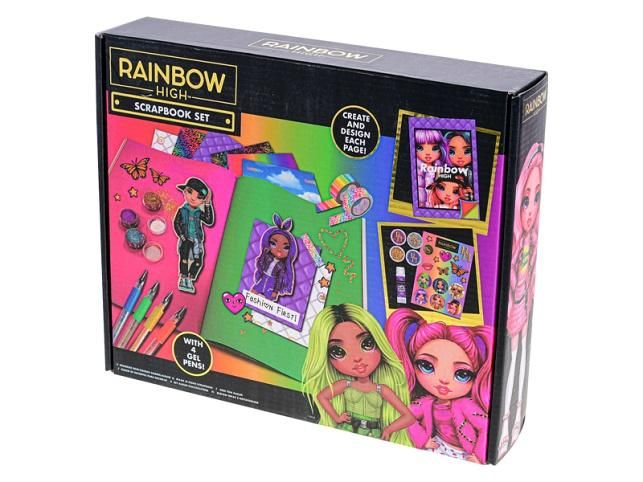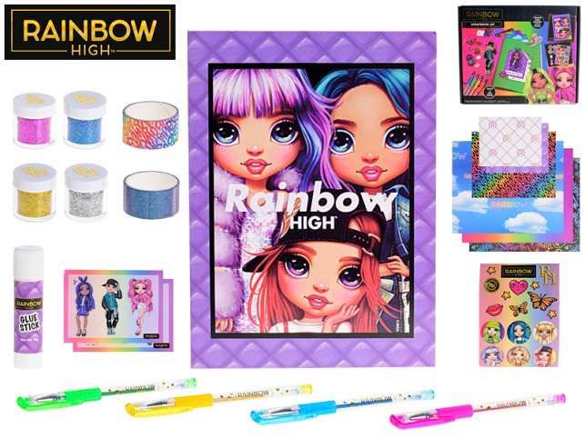 Rainbow High je střední škola, na níž se všichni studenti oblékají jako módní ikony a z jejich stylu jde každému hlava kolem! Rainbow High sada je ideální jako dárek k narozeninám nebo jiné zvláštní příležitosti pro všechny fanynky. Kreativní sada obsahuje notes, 4x třpytky, 2x barevné pásky, lepidlo, nálepky, 4x gelové propisky, šablony a barevné papíry na tvoření nejrůznějších módních výstřelků.