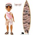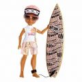 Přijď si odpočinout na pláž a užij si teplé počasí s Bellou Parker a jejími šesti přáteli. Těchto 6 dívek a 1 chlapec budou nejbarevnější a nejstylovější parta na písku se stylovými plavkami, župany, klobouky, letními botami, plážovými taškami a dalšími doplňky. Každá z postaviček má 2 outfity a může sjíždět vlny na svém surfovacím prkně, které slouží také jako stojan pro panenku. Obsah balení: • 1 ze 7 nových Fashion panenek s pohyblivými klouby a hlavou, která se pohybuje nahoru a dolů • hřeben na vlasy • extra plážové doplňky (2 sady), včetně plavek, županu a bot • nezbytné vybavení na léto: klobouky, ručníky, plážové tašky a výbava pro vodní radovánky • surfovací prkno, které lze také použít jako stojan pro panenku Velikost postavičky cca 28 cm.