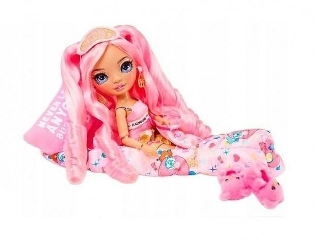 "I Fashion panenky rády přespávají u svých kamarádek. V balení najdeš vše, co na pořádnou pyžamovou párty panenka potřebuje. Úplně nové panenky mají opět nádherné dlouhé česatelné vlásky, dlouhé řasy a také ohebné klouby na nohou a rukou. Obsah balení: • 1 krásná panenka s dlouhými česatelnými vlásky • 2 outfity • módní doplňky (boty, přezuvky, náušnice, maska na obličej… ) • hřeben na vlasy • ramínka na šaty • stojánek na panenku • 1 polštář • 1 spací pytel"