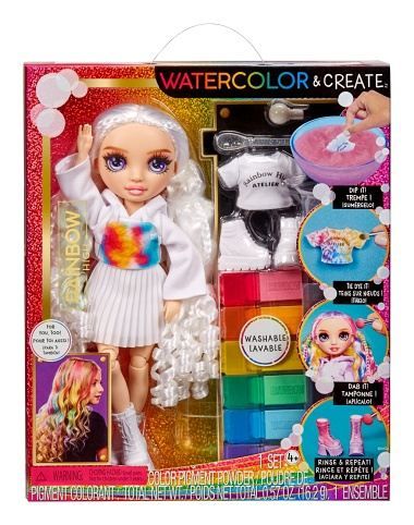 Udělejte si svou vlastní Rainbow High panenku! V balení najdeš panenku s bílými vlasy oblečenou od hlavy k patě do bílé barvy a 6 smývatelných duhových prášků (červený, oranžový, žlutý, zelený, modrý a fialový), gumičky k batikování a aplikační houbičku. Existuje nekonečně mnoho způsobů, jak vybarvit oblečení panenky nebo její vlasy. Po dokončení můžeš panenku opláchnout a vybarvit ji úplně jinak. Prášek nasypeš do vody. Do barevné vody můžeš namočit vlasy a oblečení, nebo houbičku, kterou budeš vytvářet vzory. Pomocí gumiček svaž oblečení a vytvářej různě batikovaný outfit. Obsah balení: • panenka s pohyblivými klouby • bílý outfit • barevnách prášků a další doplňky k barvení oblečení a vlasů