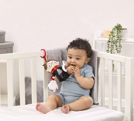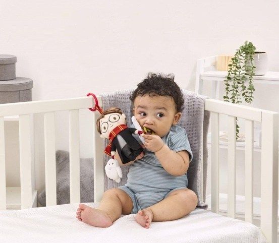 Plyšový kamarád s kousátkem a chrastítkem a pískající sovou! Je čas na kouzelná dobrodružství s Harrym Potterem! Tato zábavná závěsná hračka byla navržena tak, aby stimulovala smysly dítěte a podporovala hru v raném vývoji. Plyšový Harry Potter s kousátkem ve tvaru hvězdy má své typické kulaté brýle a jizvu po blesku, je oblečen do bradavické róby a na krku má barevný nebelvírský šátek. Harryho doprovází také jeho věrné koště Kulový blesk, které vydává jemný chrastivý zvuk, a jeho věrná společnice sova Hedvika, která při stisknutí píská. Hračku je snadné připevnit na kočárek, postýlku nebo autosedačku. Je proto ideální nejen na doma, ale i pro kouzelné chvíle na cestách. Je skvělým dárkem pro nejmladší čarodějnice a čaroděje. Hlavní vlastnosti:•hvězdné kousátko, chrastící koště Kulový blesk, pískající sova Hedvika, plyšový Harry Potter v dokonalém designu•vhodné od narození•skvělý dárek pro malé fanoušky kouzelného světa Harryho Pottera•napomáhá k rozvíjení smyslů•měkký plyš, kvalitní materiál•perfektní jako dárek•slouží k zavěšení na kočárek, postýlku nebo autosedačku