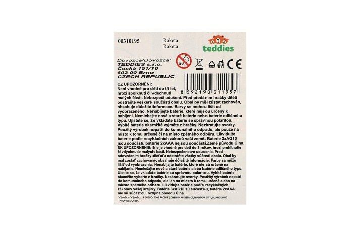 Raketa vypouštějící páru plast 36cm na baterie se zvukem se světlem s doplňky v krabici 17