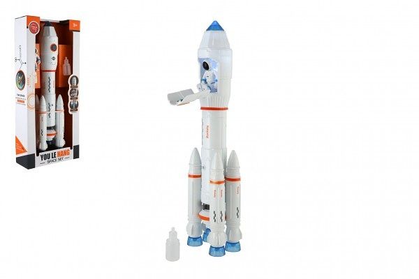 Raketa vypouštějící páru plast 36cm na baterie se zvukem se světlem s doplňky v krabici 17
