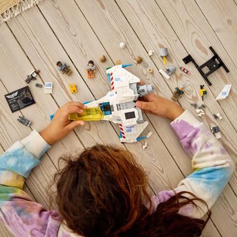 Tento cool model kosmické lodi zaujme autentickými detaily z filmu Rakeťák studií Disney a Pixar, který fanoušky zavede na počátek příběhu o Buzzovi Rakeťákovi. Těšit se lze například na otevírací kokpit, do něhož se vejde minifigurka LEGO® Buzze Rakeťáka, ale také na odnímatelný palivový článek. Součástí sady jsou 4 postavy z filmu a 3 zbraně, včetně Darbyina raketometu přezdívaného „Mr. Boom“, s nimiž si fandové připomenou scény z filmu. Zároveň nechybí podstavec s informační cedulkou, aby si fanoušci mohli svůj model hrdě vystavit v pokojíčku.
