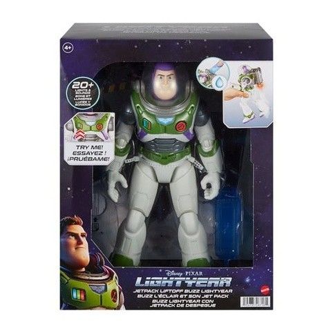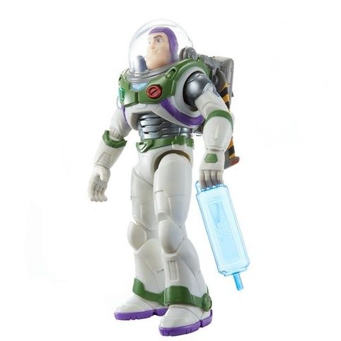 Vydejte se vstříc vzrušujícím dobrodružstvím s novým filmem Rakeťák od studií Disney a Pixar. Buzz Rakeťák a jeho posádka uvízli na nezmapované planetě, kde budou muset bojovat s nepřátelskými rostlinami, obřími brouky a největší hrozbou, Zurgem, aby dokončili svou misi a vrátili se domů. Tato Velká figurka jedinečný Buzz představuje vesmírného strážce ve svém známém obleku s křídly. Po naplnění fúzního kanystru vodou si Buzz může nasadit helmu, roztáhnout křídla na celou šířku 24 cm a připravit se na start. Když se Buzz odlepí od země, přehrávají se světelné a zvukové efekty a z křídel vychází skutečná stopa páry! Díky světlům a zvukům inspirovaným napínavým animovaným dobrodružstvím je zábava ještě umocněna. Barvy, rozměry a dekorace se mohou lišit.