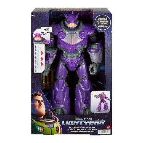 Vydejte se vstříc vzrušujícím dobrodružstvím s novým filmem Rakeťák od studií Disney a Pixar. Buzz Rakeťák a jeho posádka uvízli na nezmapované planetě, kde budou muset bojovat s nepřátelskými rostlinami, obřími brouky a největší hrozbou, Zurgem, aby dokončili svou misi a vrátili se domů. Tato velká figurka Buzzova nepřítele Zurga je vybavena světly a zvuky a útočí blasterem. S výškou přes 34 cm a šířkou více než 17 cm Zurg převyšuje ostatní figurky v měřítku 30 cm, má 11 pohyblivých kloubů a autentický filmový vzhled. Díky své zastrašující mohutnosti je Zurg připraven postavit se Buzzi Rakeťákovi a jeho týmu a utkat se v bitvě dobra a zla. Barvy, rozměry a dekorace se mohou lišit.