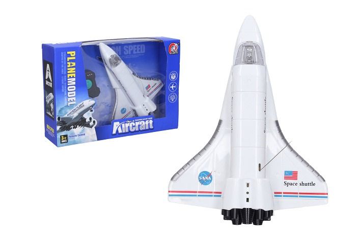 Raketoplán jezdící RC na dálkové ovládání. Rozměry 21x16 cm. Frekvence 27MHz. Světelné efekty. 2xAA baterie do raketoplánu, 2xAA do ovladače nejsou součástí. Přepínač ON/OFF na spodní straně raketoplánu. Ovladač - levé tlačítko jízda dopředu, pravé tlačítko - jízda dozadu.