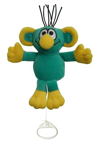 Postavička s mechanickým hracím strojkem. Zatáhněte za šňůrku a Rákosníček začne hrát příjemnou melodii.
