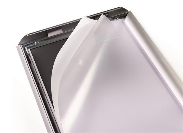Stabilní hliníkový rám se sponami DIN A3, ve stříbrné barvě.