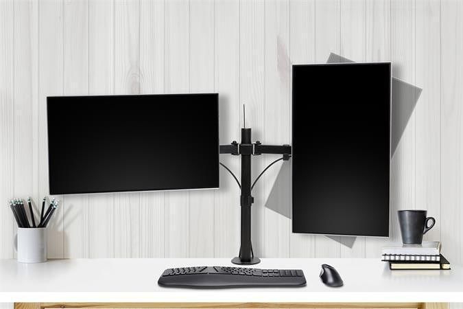 Systém SmartFit® Ergo Dual zjednodušuje nastavení správné výšky monitoru a nastavení jeho vzdálenosti, díky robustnímu a stabilnímu ramenu monitoru
