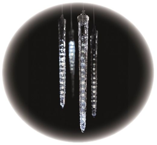 Vhodné do interiéru i exteriéru. Norma IP44 zajišťuje celkové krytí optické i elektrické části. Délka přívodního kabelu: 5 m Délka řetězu: 3,6 m Počet krápníků: 7 ks Celková délka 8,6 m Barva drátu:transparentní Počet LED: 140 Barva světla: studená bílá Padající efekt Napětí : 230V Příkon 3,6 W