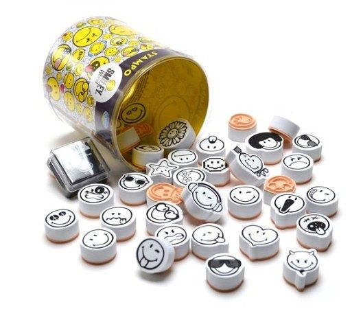 38 různých smajlíků + 1 malá černá razítkovací poduška