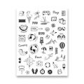 Sada obsahuje 46 ks razítek v balení a 1 razítkový polštářek černé barvy.