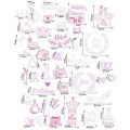 Sada obsahuje 43 ks razítek v balení a 1 razítkový polštářek černé barvy.