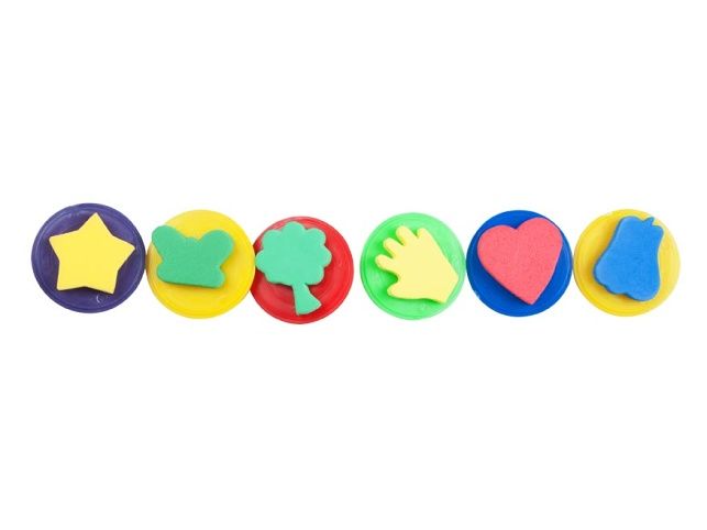 Razítka pěnová, jednoduchá na uchopení - 6 motivů. Ideální na ozdobení sešitu, přání nebo i oblečení. OBSAH BALENÍ: - 6 ks razítek Motiv: motýlek, ruka, hvězda, srdce, strom, zub Uvedená cena je za 1 balení.