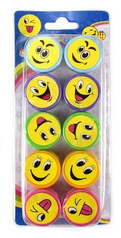 Pokud mají vaše děti rády razítka, tak si určitě zamilují tuto sadu. Najdou v ní 10 různých smajlíků, kterými si mohou ozdobit sešity, úkoly nebo obrázky. Mají celkem 5 barev a jsou již napuštěné inkoustem, takže nebudete potřebovat žádné razítkovací polštářky. Udělejte dětem radost a darujte jim tyto krásná razítka ještě dnes.