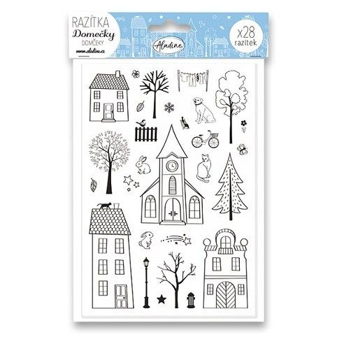 Sada Razítka Stampo Christmas Aladine - Domečky obsahuje 28 vánočních razítek, která jsou ideální pro výrobu i na ozdobení přáníček nebo dárků.
