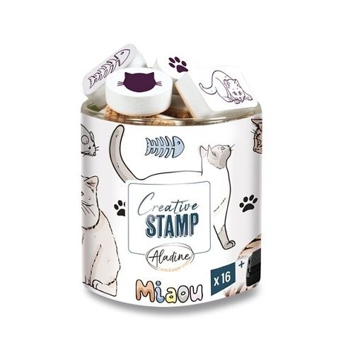 Gumová razítka na pěnové hmotě s motivem kočiček. Razítka mají hluboký reliéf a precizně propracované detaily. Velikost motivů cca 3 cm. Sada obsahuje 16 kusů razítek v balení a 1 razítkový polštářek černé barvy. Lze využít i na potisk textilu a polymerů.