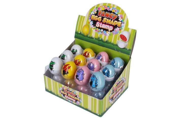Razítko vejce dinosauří přitlačte na čistý papír a můžete tisknout. Razítka je možné tímto způsobem kombinovat, děti si mohou vytvářet své vlastní příběhy.