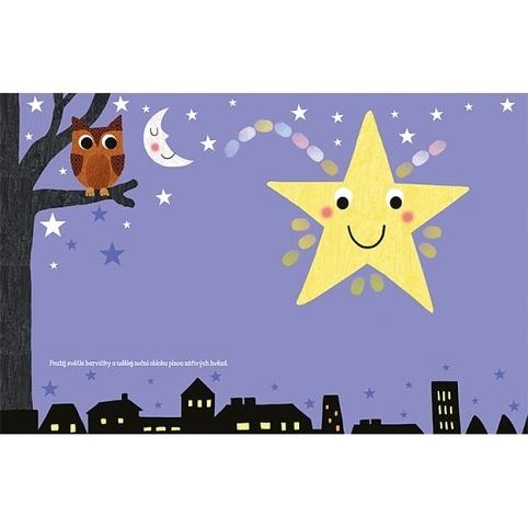 Razítkování prstíky obsahuje 32 stránek plných veselých obrázků k dorazítkování a 6 prstových barev.