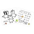 Razítkovánky obsahují 64 stran omalovánek a aktivit s razítky, 10 pěnových razítek a barevnoupodušku.