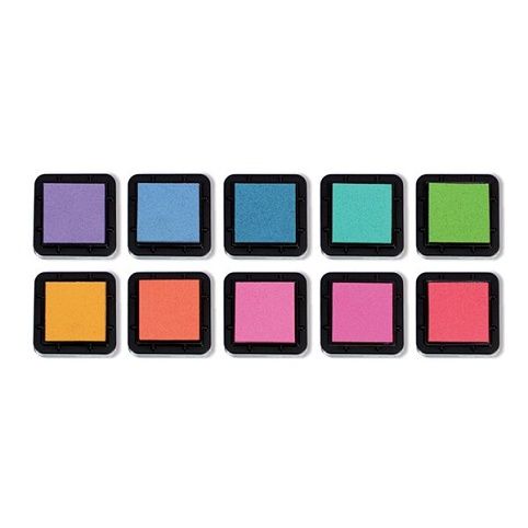 Sada 10 ks barevných polštářků pro razítka StampoKids a StampoScrap.Velikost polštářků je 3×3 cm.