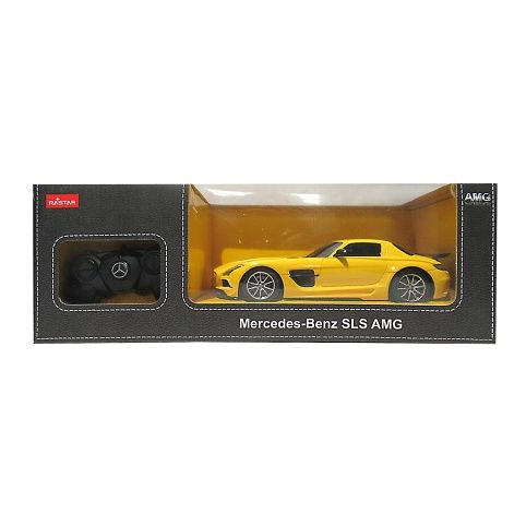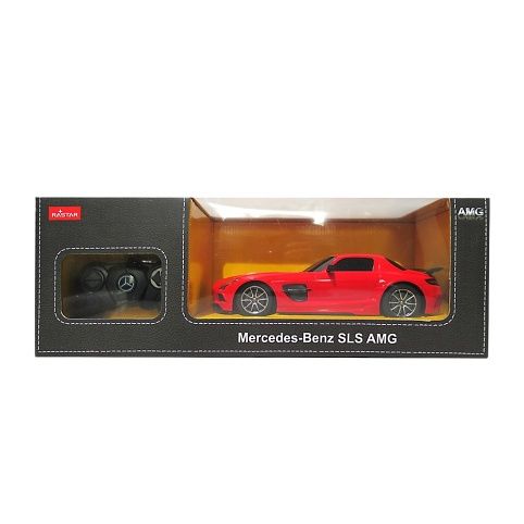 Mercedes Benz SLS AMG. Nabízíme jako auto na dálkové ovládání ve 3 barevných variantách a měřítku 1:18. Detailní provedení, kvalitní odpružení. Funkční přední a zadní světla. Unikátní otevírání dveří. Ovladač – 2×AA baterie, auto – 3×AA baterie (nejsou součástí balení). Pro děti od 3let. Na baterie: 5x AA (nejsou součástí balení)