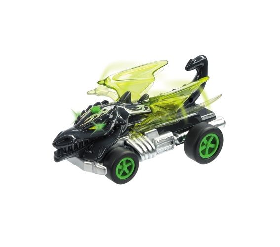 RC auto (1:24) Hot Wheels ve tvaru draka. Auto svítí a hýbe křídly. Určeno pro děti od 3 let. Auto vyžaduje 3× AA baterie (jsou součástí balení a dálkové ovládání 2× AA baterie (nejsou součástí balení). Na baterie: 3x AA (jsou součástí balení)
