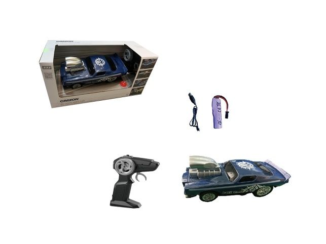 RC auto se světelným efektem. K dispozici je 6 režimů osvětlení. Lehké driftové auto, vyrobené tak, aby vydrželo zábavu za každého počasí. Otáčení zpět a driftování. Kývavý pohyb nápravy, třes. Jezdí dopředu i dozadu, zatáčí vlevo, vpravo. Auto se při otáčení nakloní na jednu stranu. Efekt blikání světel. Dálkovým ovládáním můžete přepínat režim blikání světla jedním tlačítkem. Doba nabíjení přes USB kabel: cca 2,5 hodiny Provozní doba: cca 25 minut; Dosah dálkového ovládání: cca 25 m; Kapacita a napětí baterie: 500mAh, 7.4V Maximální rychlost 10 km/h. Frekvence 2,4 GHz, frekvenční pásmo 2405–2475MHZ, maximální radiofrekvenční výkon 0DBM. Na baterie: 1x 7,4V (je součástí balení), 2x AA (nejsou součástí balení)