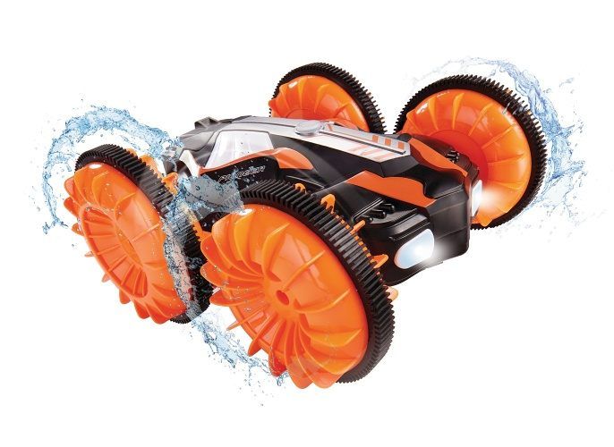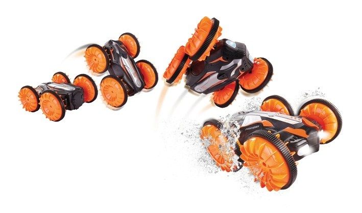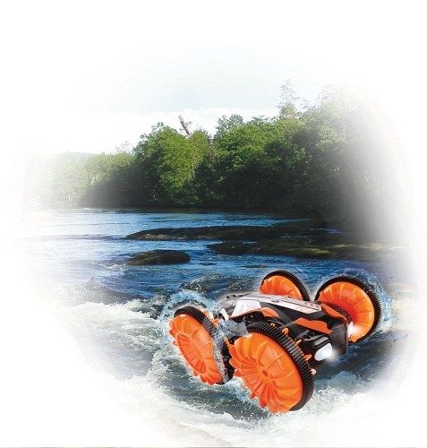 Auto na dálkové ovládání v měřítku 1:18, 2 kanál, 2,4 GHz, s přetáčecí funkcí, jízda po zemi i po vodě, nabíjecí kabel USB . Velikost 22 cm.