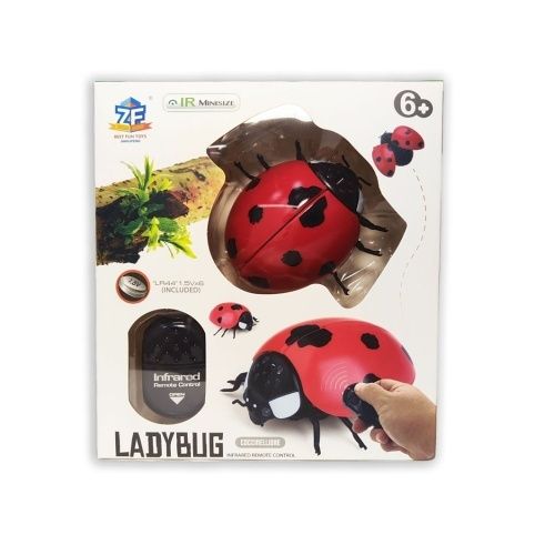 Beruška na dálkové ovládání pomocí infrared. Balení obsahuje berušku a ovladač. Beruška má demo pohybovací mód, dále lze ovládat na dálku, má svítící oči. Jezdí vpřed, vzad, vlevo, vpravo. Hračka vyžaduje baterie 6× LR44, jsou součástí. Dosah ovladače až 8 m. Hrací čas cca 20 min. Vhodné pro děti od 6ti let. Na baterie: 6x LR44 (jsou součástí balení)