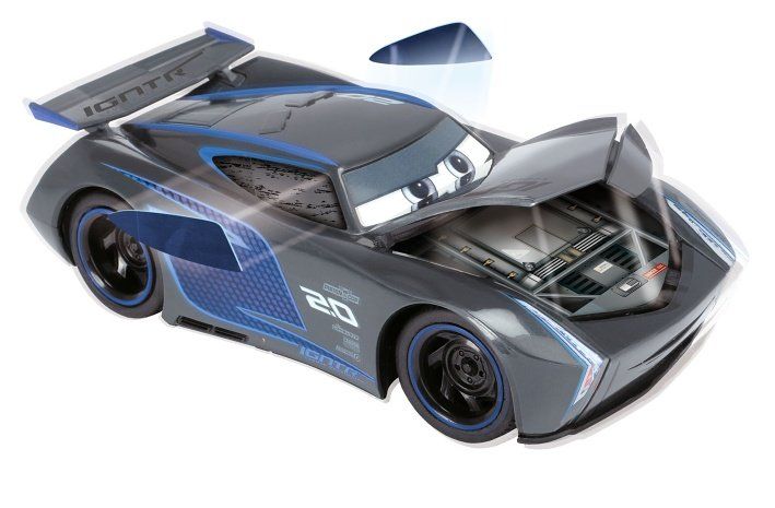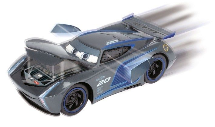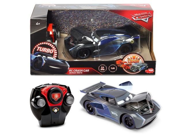 Auto Jackson Storm na dálkové ovládání z filmu Cars 3 s turbo a crash funkcí. 2 kanály (jezdí vpřed/vzad, vlevo/vpravo), frekvence 2,4 GHz, měřítko 1:24, délka 17 cm. Rozměry 17 x 6 x 8 cm. Barva tmavě šedá.